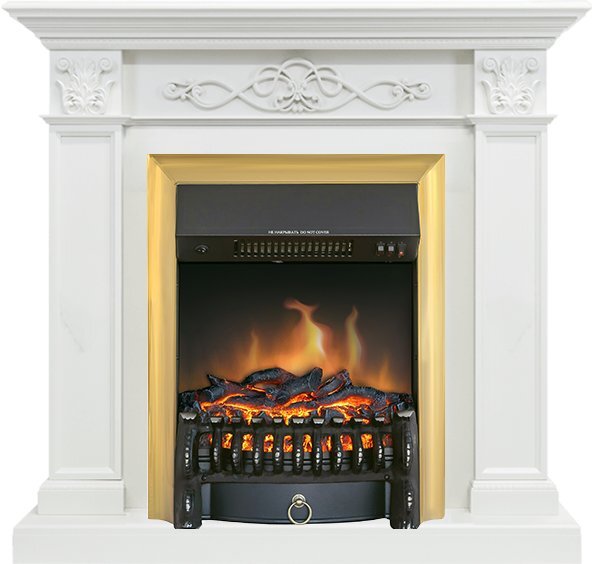 Каминокомплект Verona - Белый дуб с очагом Fobos FX Brass