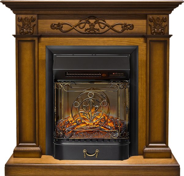 Схожесть с натуральным камином усиливается звуком потрескивающих дров и двухступенчатой системой обогрева. Управлять электрокамином можно с помощью пульта ДУ, который входит в комплект поставки.